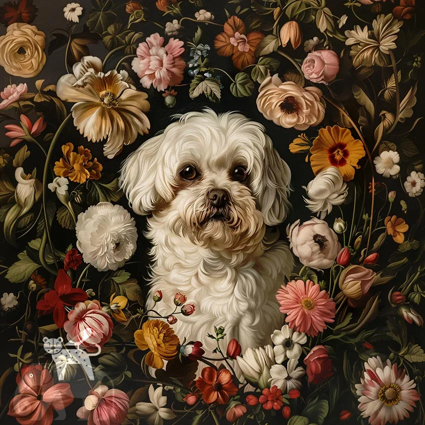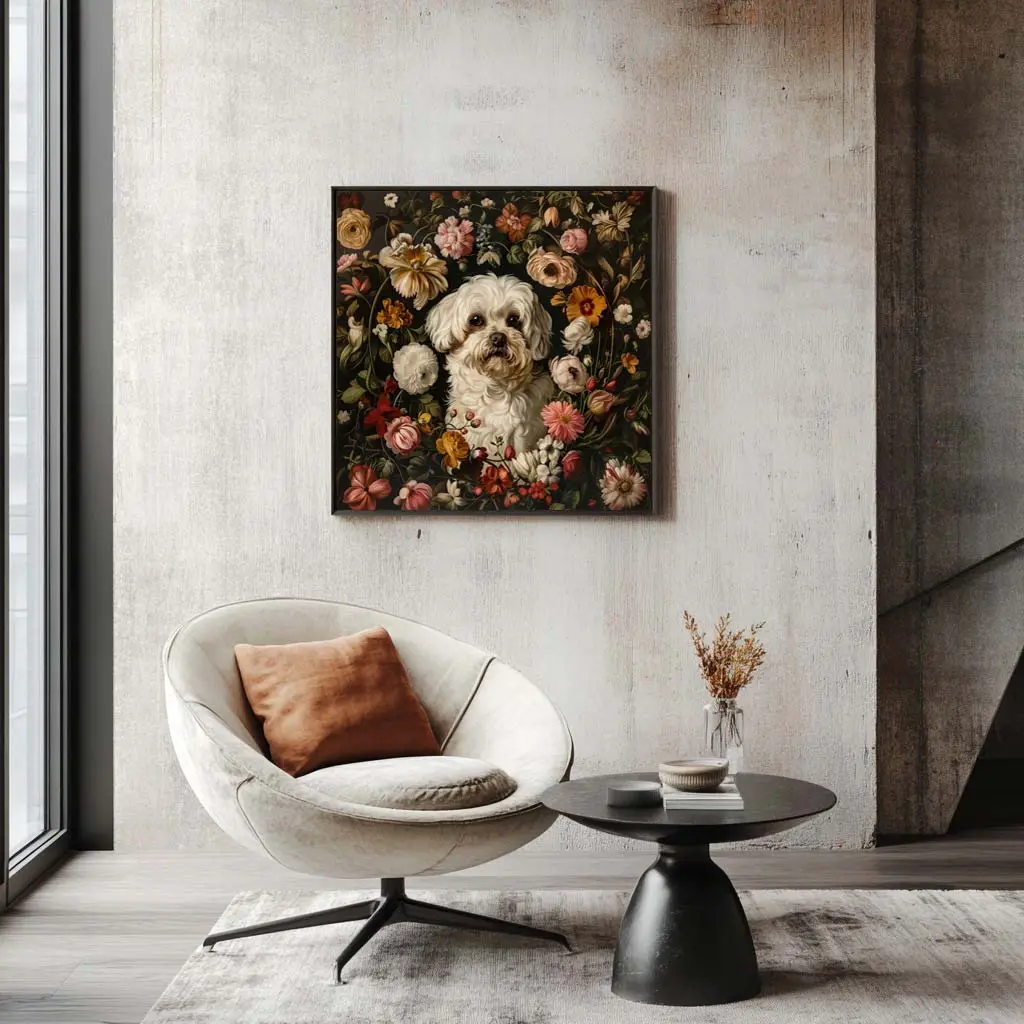 Maltese dog pet portrait wall decor by The Garden Menagerie